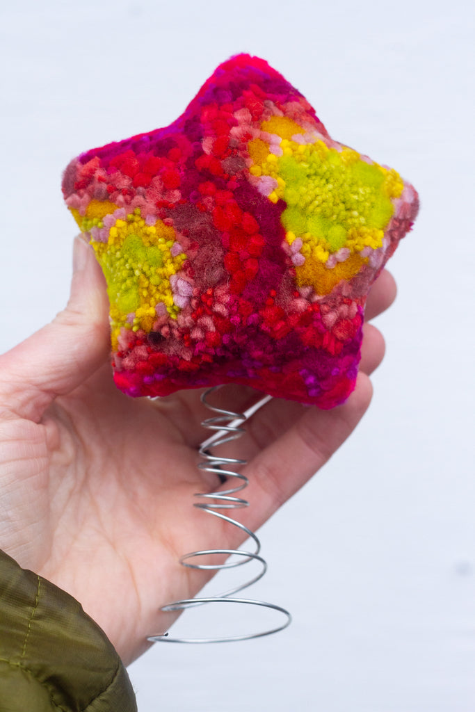 "Puffs" have been an exploration into my way of framing fiber art + this star shape was just begging to become a tree topper. I am so excited for how fun these turned out!