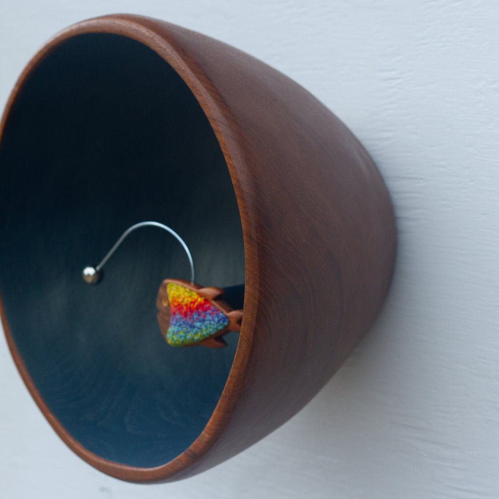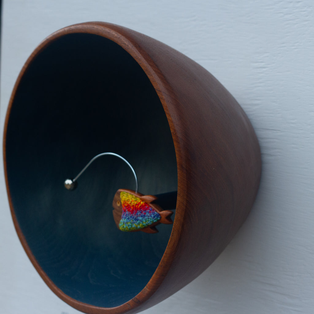 I stitched the center in my favorite French Knots and used a truly special, extra chunky and extra deep, teak bowl to pull it all together. The fish frames are handmade by a couple down in Florida, they're amazing and so fun to incorporate into my work. I love all the details in this piece and believe that larger size will really add a bold impact to wherever you choose to display it.