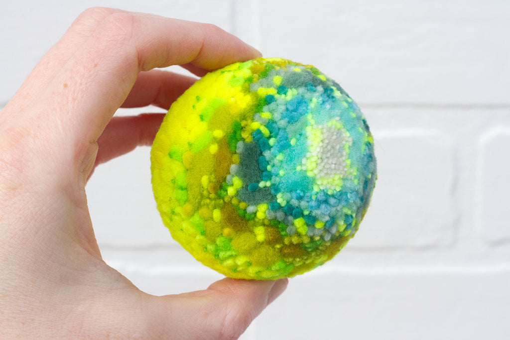 All the fibers within the frame have been sourced from my favorite small businesses and put together to create a fun piece of fiber art that is fully contained!