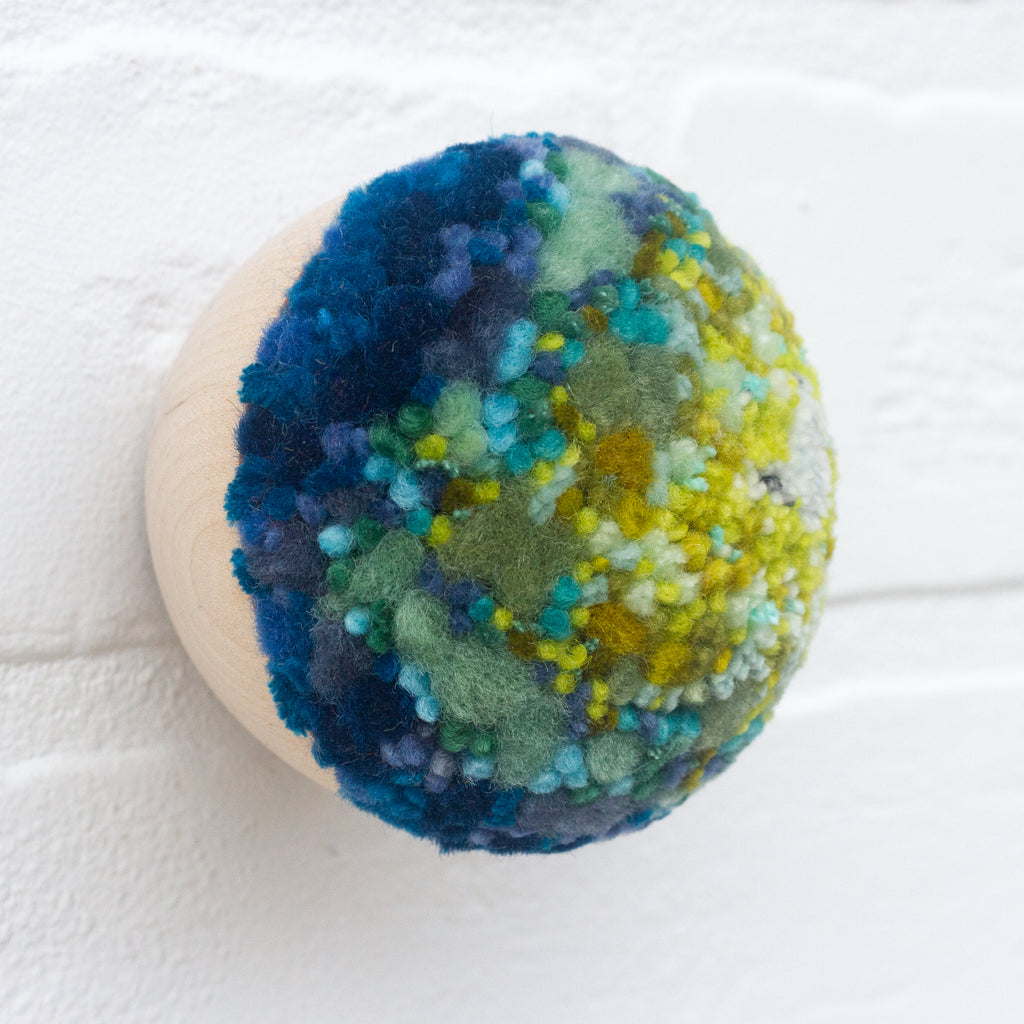 There is a small, drilled hole on the back that will let you hang the piece flush against the wall with a single, brad style nail OR lay it flat as a sort of fiber art sculpture or faux plant in your favorite spot!