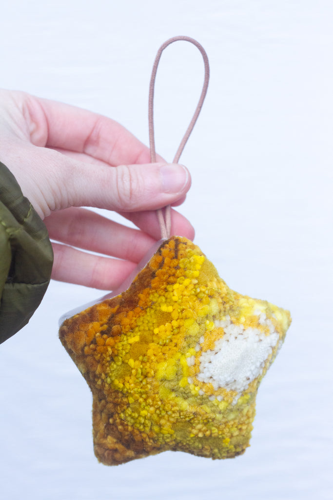 "Puffs" have been an exploration into my way of framing fiber art + turning them into a holiday ornament was something I just had to try!